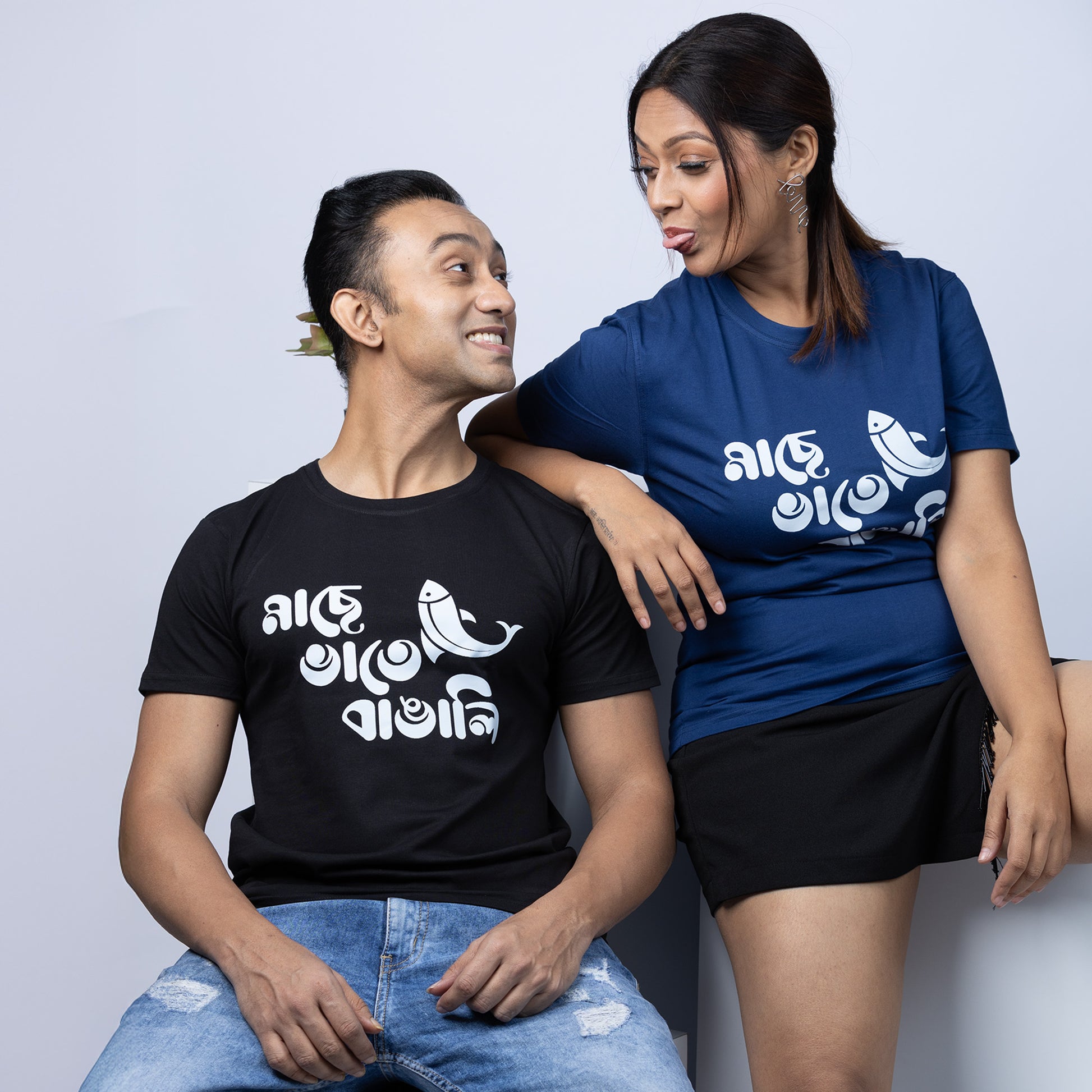 Machh e Bhat e Bangali' Bengali Printed T-Shirt - Unisex Casual Wear